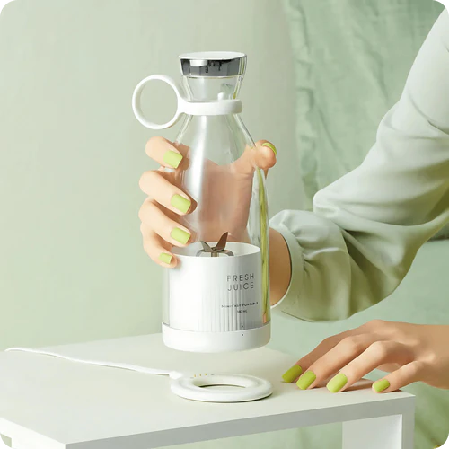 Each blender comes with a USB-C charger in the package that can then wirelessly recharge your blender base to full in less than 2 hours.